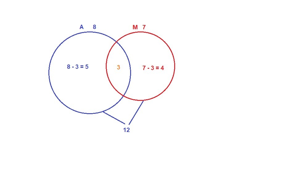 В город приехали 12 туристов. Из них 8 хотят посетить архетиктурные сооружения,а 7-мемориальные. Сколько туристов хотят посетить и архетиктурные,и мемориальные сооружения?