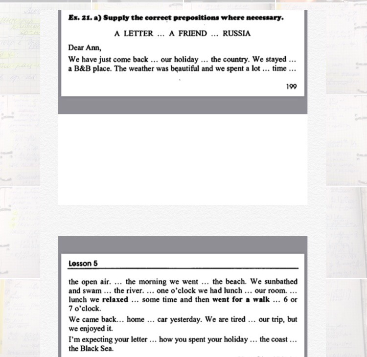 from our… in … at a B&B… of time in … in the morning… to the beach…in the river. at one …in our room after lunch …for some time … at 6