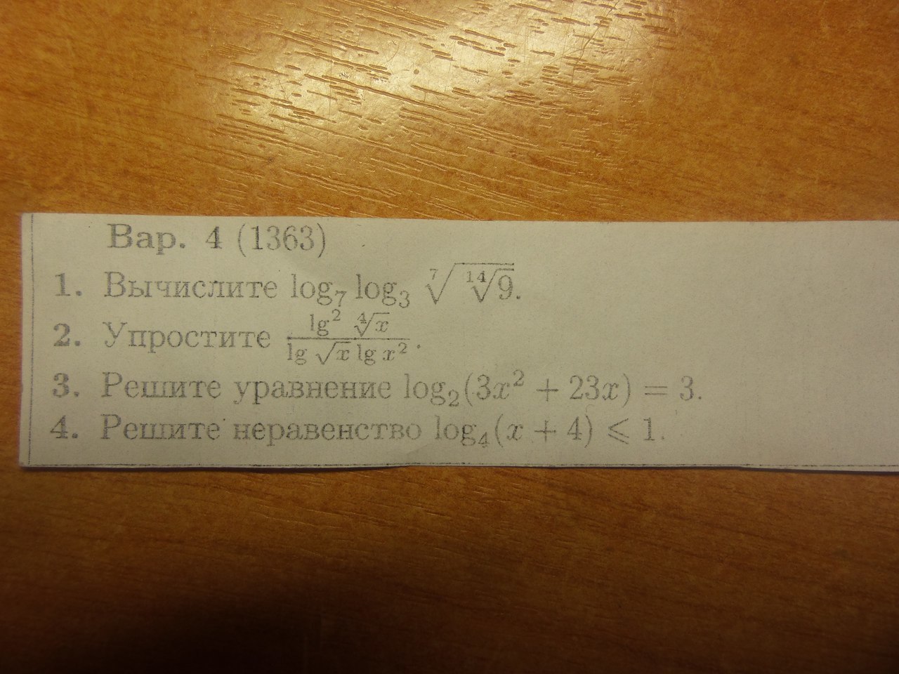 Данное неравенство равносильна систем неравенств, так как по определению log , аргумент х+4 положительный и х+4=<4^1.
