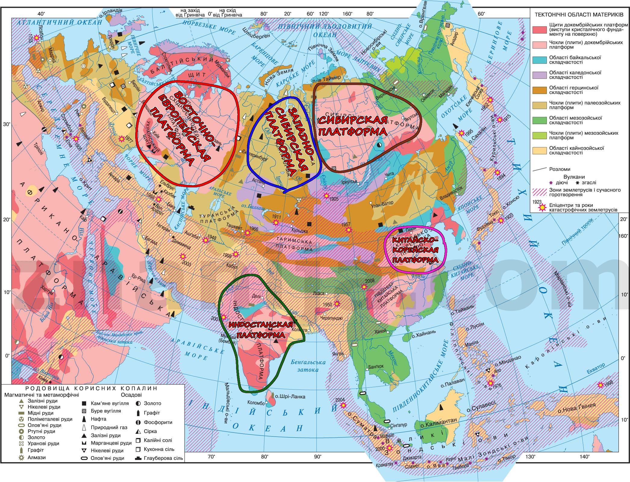 Ответ на этот вопрос можно подготовить с помощью физической и тектонической карт. Примеры таких соответствий вы можете увидеть на картах, прикрепленных к ответу.