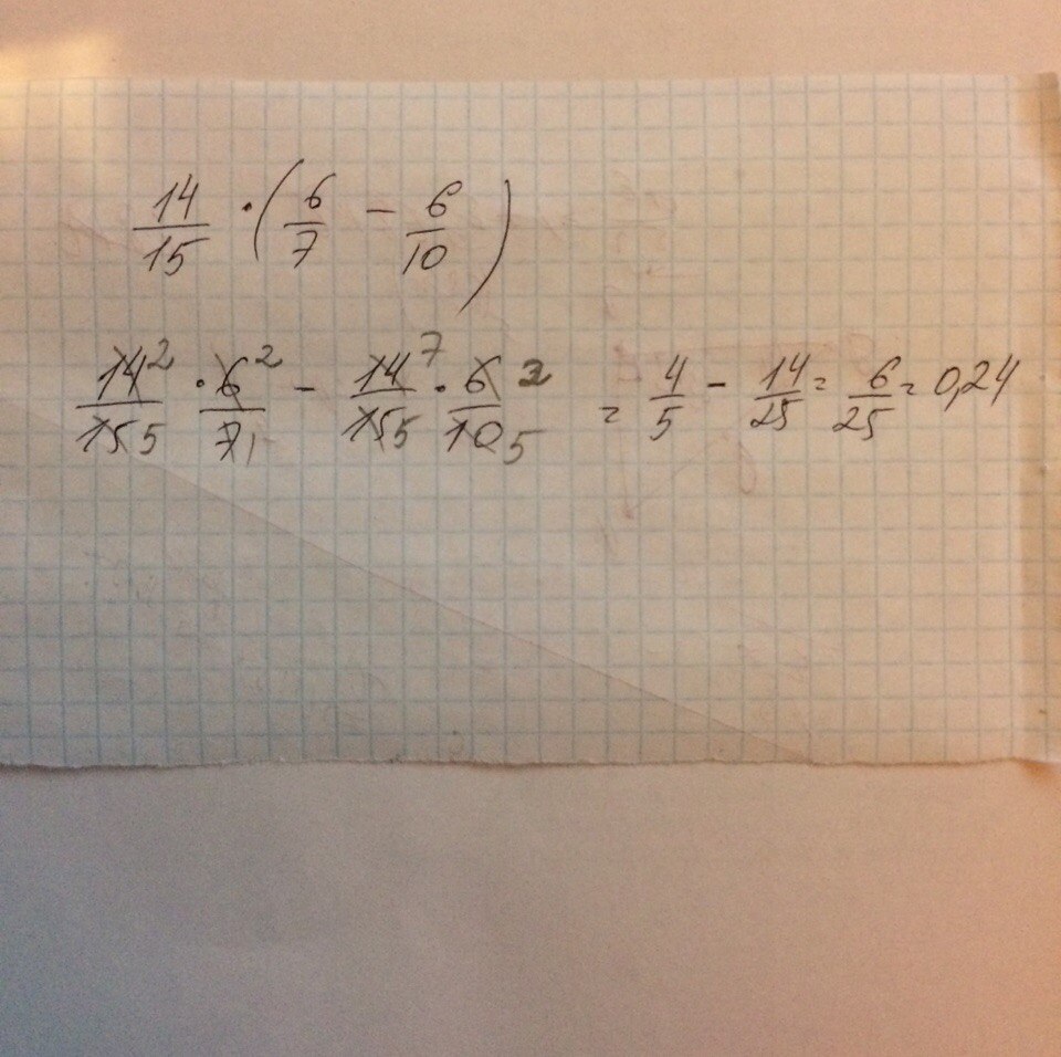 Раскрываем скобки, умножая 14/15 на каждое число в скобках.