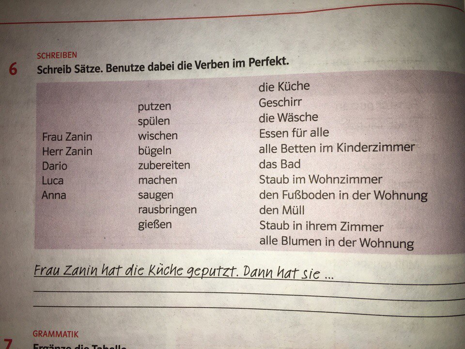 Frau Zanin hat die Küche geputzt.