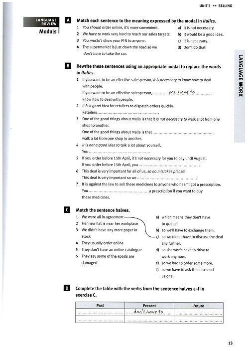 2 should dispatch orders quickly ; 3 don't have to ; 4 should talk alot about yourself ; 5 don't have to pay until Augist ; 6 mustn't do any mistakes ; 7 must have