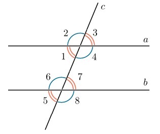 Смежные углы - это 2 угла у которых одна сторона общая. На рисунке мы видим, что 2 угол смежен с 3 углом, 1 с 4, и т.д. сумма смежных углов равна 180°.