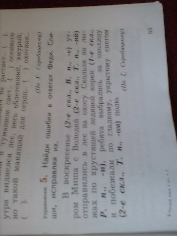 В воскресенье (2 скл В.п -е) утром Миша с Володей (1скл Т.п -ей) отправились в лес на охоту. Скользя на лыжах по хрустящей ледяной корке ( 1 скл Д.п -е), ребята выбрались за околицу и побежали по гладкому, укрытому снегом (2скл Т.п-ом) полю.