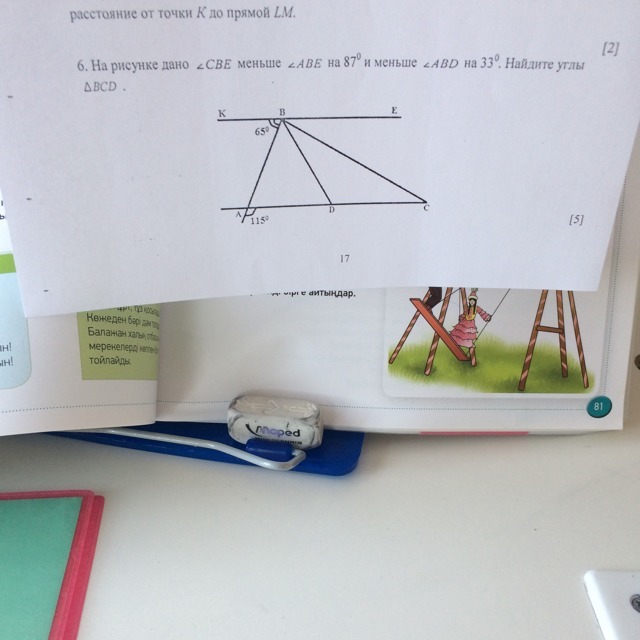 судя по рисунку прямые КЕ и АС параллельны, тогда уголС в треугольнике