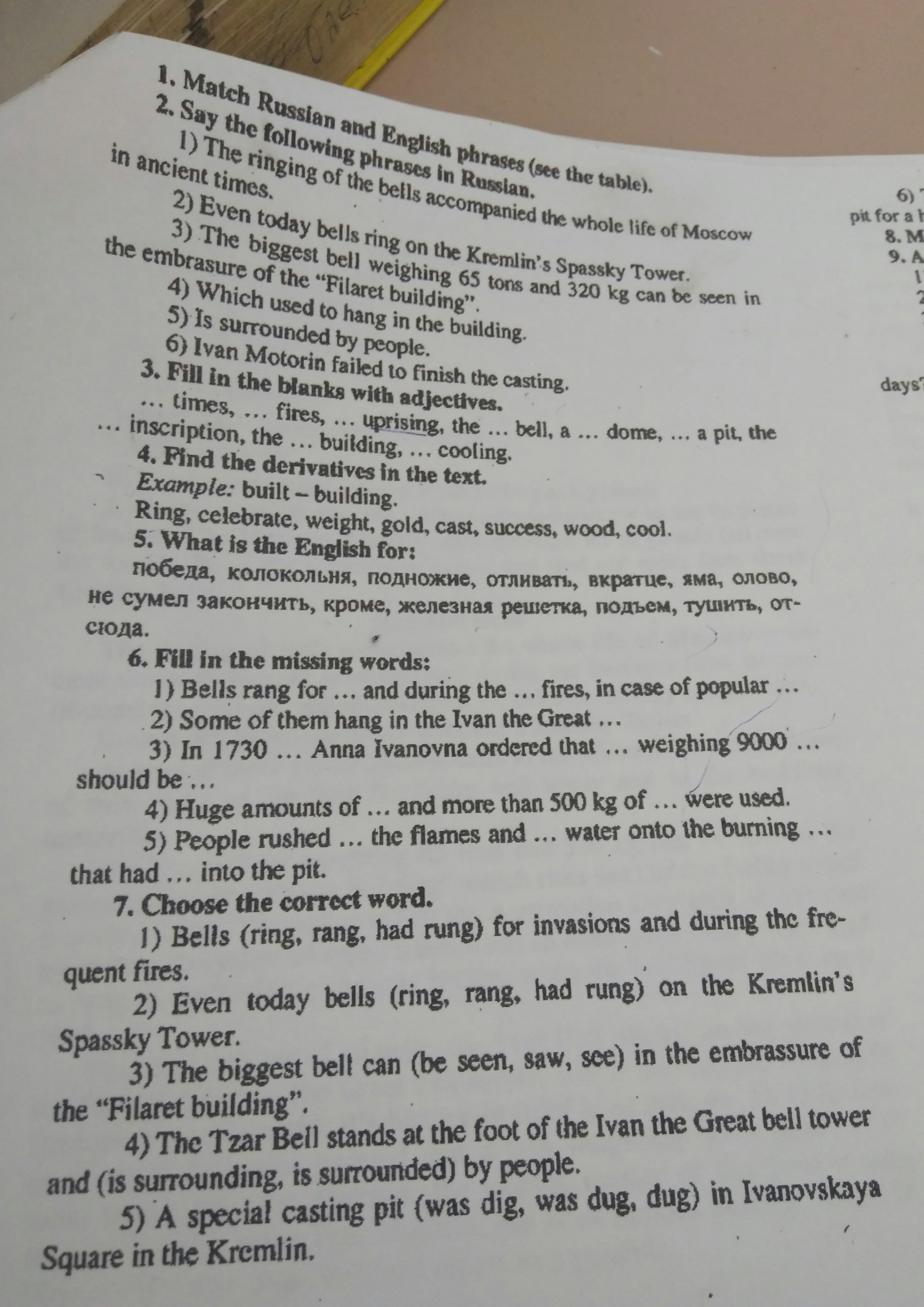 3) самый большой колокол может (видел, видел, видел) в амбразуру