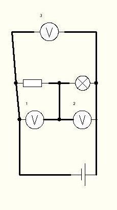 Изобразите схему электрической цепи, состоящей из источника тока и последовательно соединенных лампы и резистора. Отметьте, как надо подключить вольтметр, чтобы измерить: