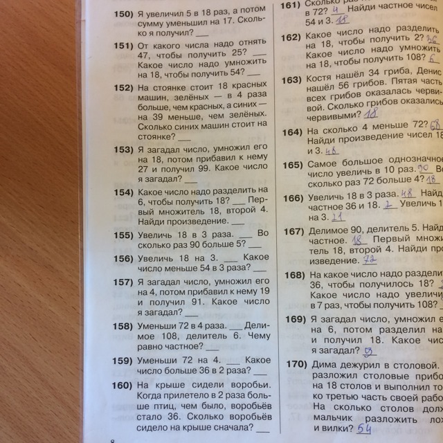 152:1)18×4=72 зеленые) 2)72-39=33 (синие)