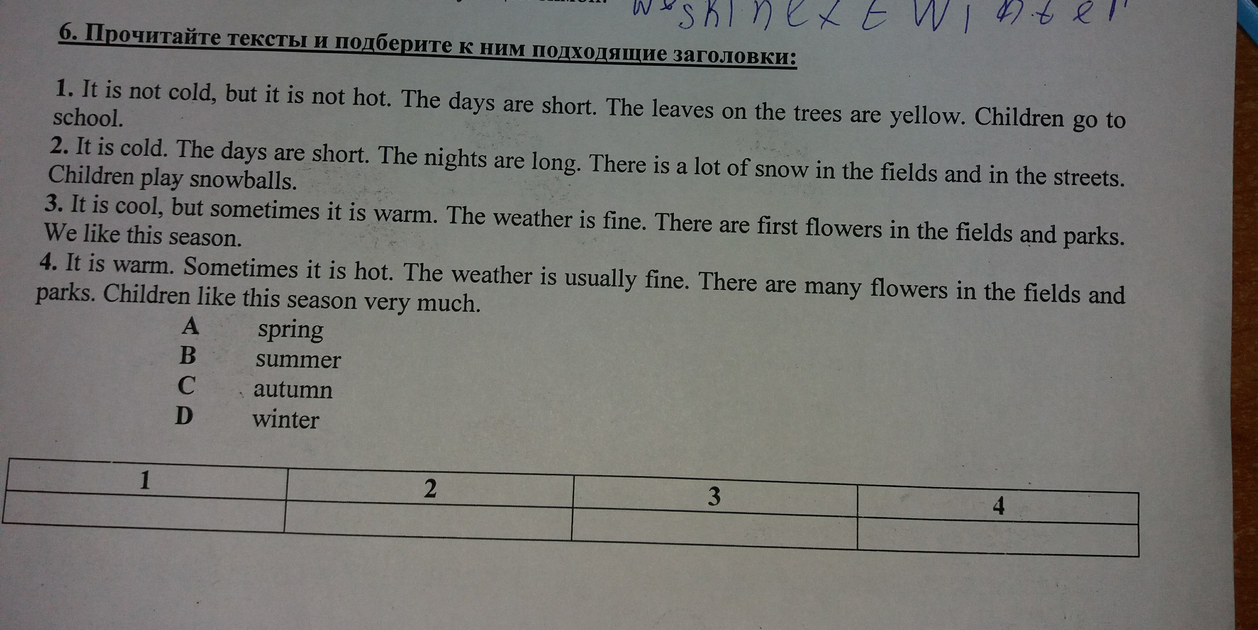 1C autumn 2D winter 3A spring 4B summer