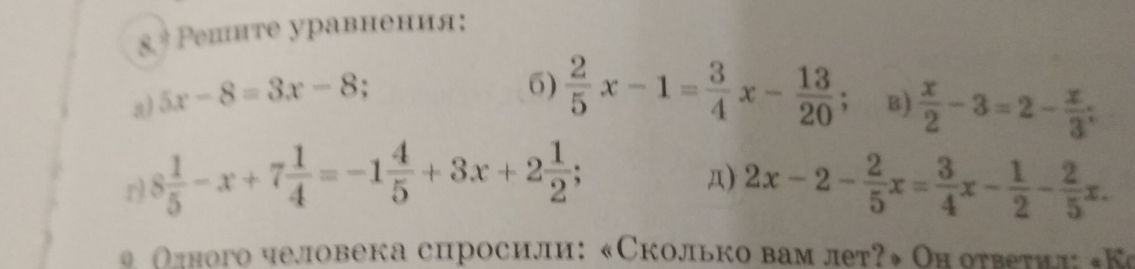 г)15 --- + 1 ---- - 2 ---- = 4*x; д) (32*x)/20 - (15*x)/20 = 3/2