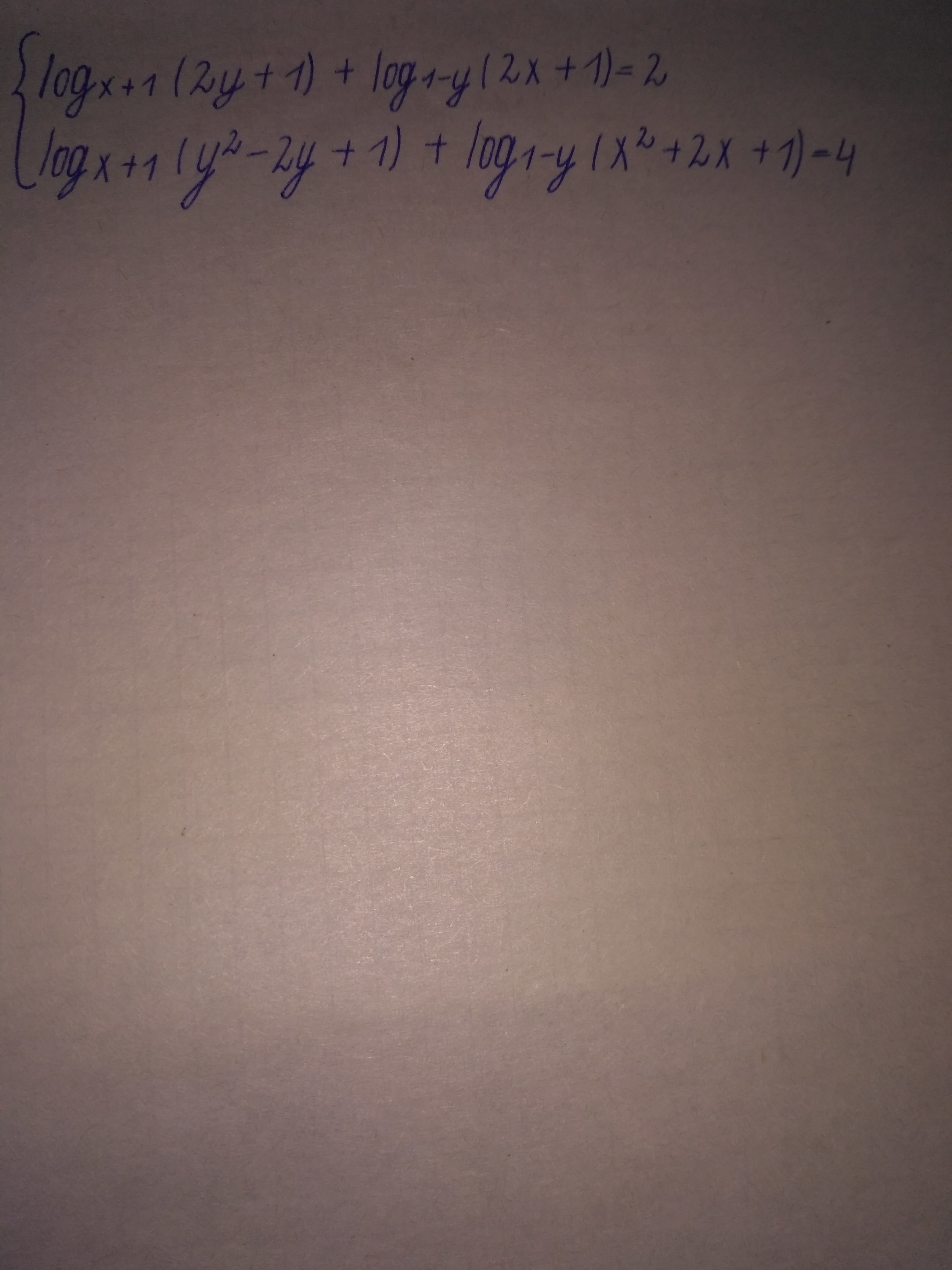 log(x+1) (y^2-2y+1) + log(1-y) ( x^2+2x+1) = 4