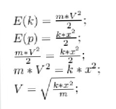Из условия задачи видно, что потенциальная энергия пружины равна кинетической энергии шарика в момент выстрела
