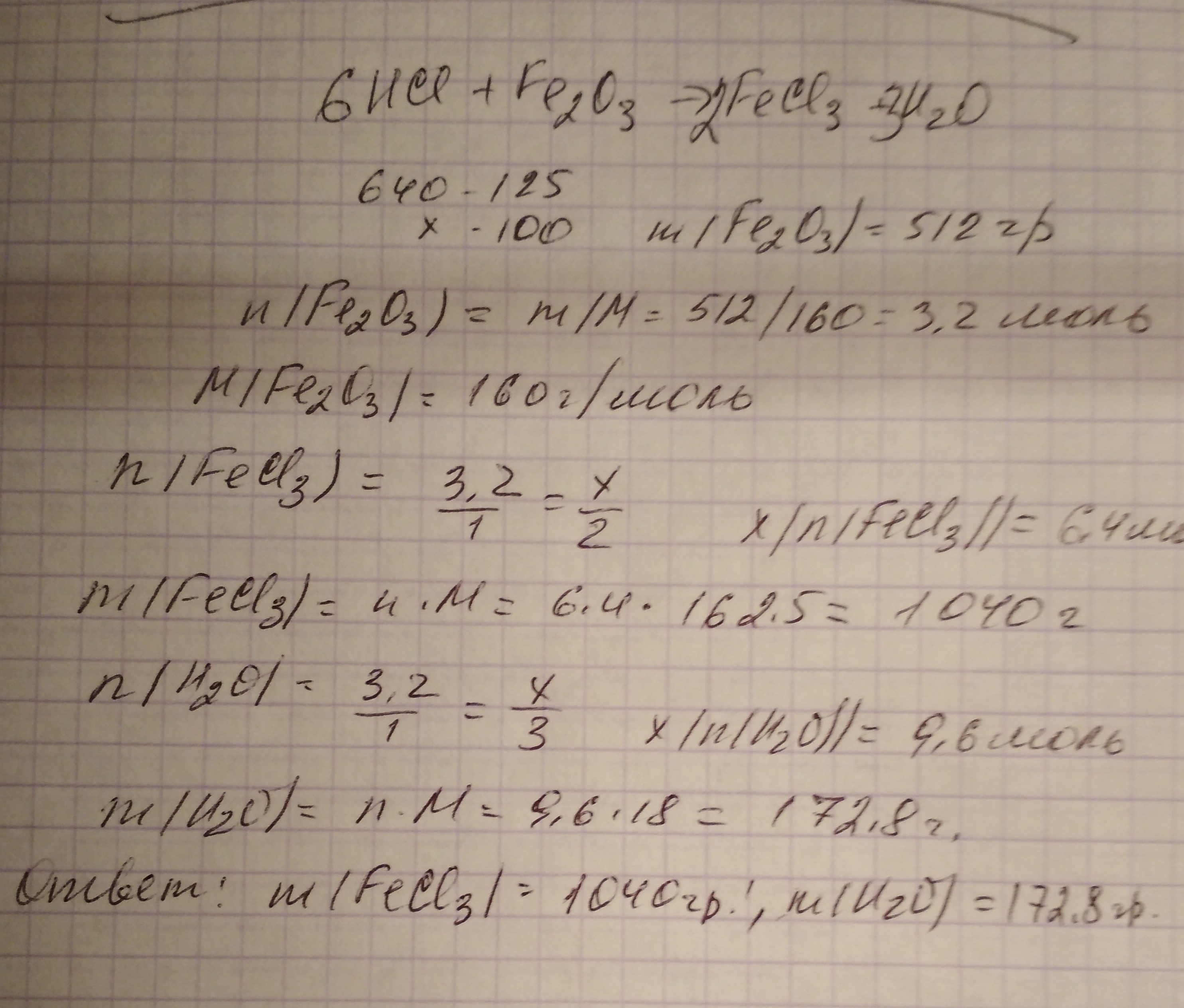 В серной кислоте растворили 640г Fe2O3 содержащего 25% примесей. найдите массу полученной соли и количество образовавшиеся воды.