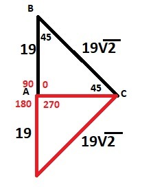 Нарисуй равнобедренный прямоугольный треугольник ABC и выполни поворот треугольника вокруг вершины прямого угла A на угол −270°. Определи периметр фигуры, которая образовалась из обоих треугольников, если длина катета данного треугольника равна 19 см.