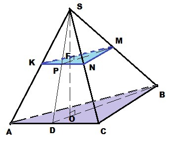 Пирамида SABC; высота SO⊥(ABC); (KMN)║(ABC); SF:FO = 3:8