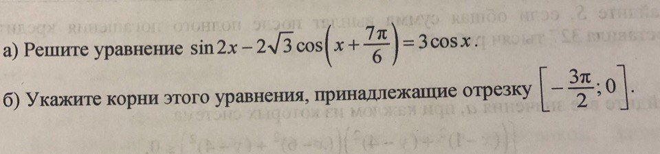 а) Sin2x-2корень из 3*cos (x+7П/6)=3cos