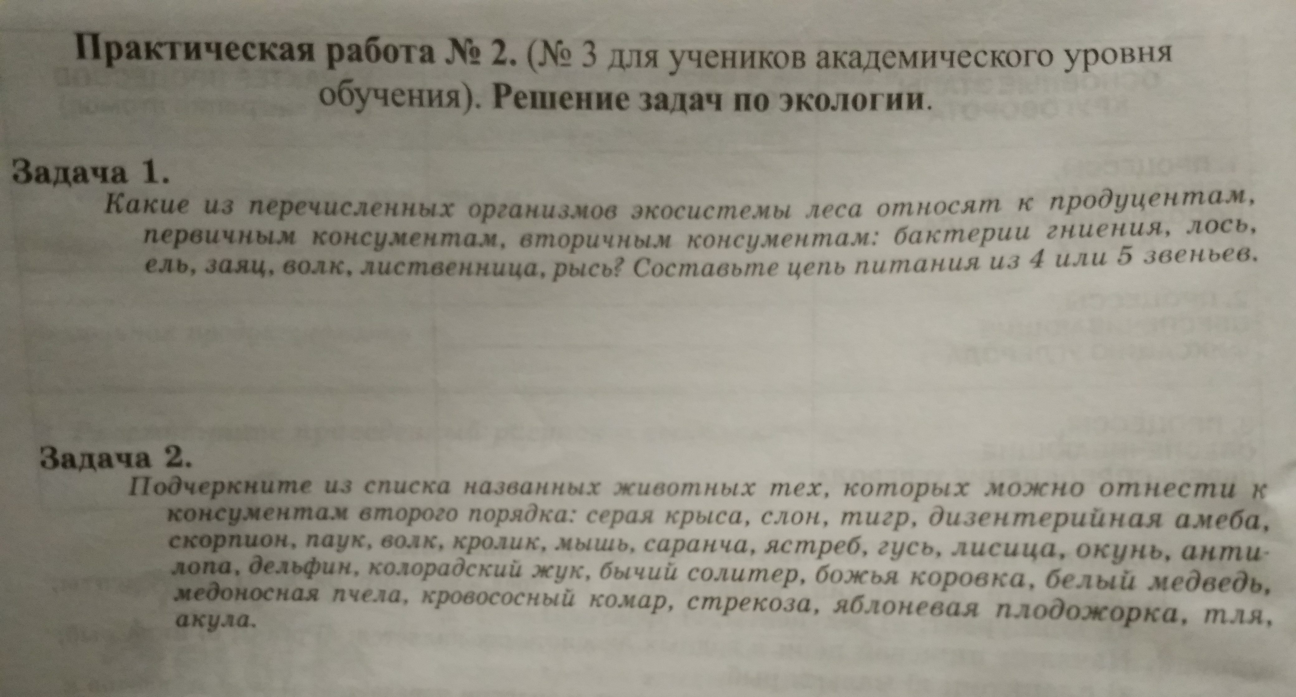 2.Консументы 2-порядка: серая крыса, тигр, дизентерийная амеба, скорпион, паук, волк, ястреб, крокодил, лисица, окунь, кобра, бычий солитер, божья коровка, белый медведь, кровососущий комар, стрекоза, акула.