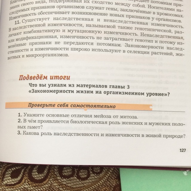 Мейоз: 1.происходит в созревающих половых клетках; 2. лежит в основе полового размножения.