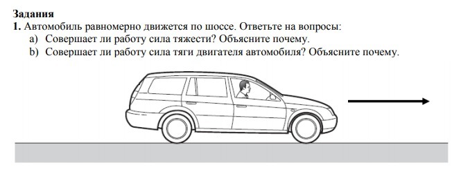 b) Совершает ли работу сила тяги двигателя автомобиля? Объясните почему.