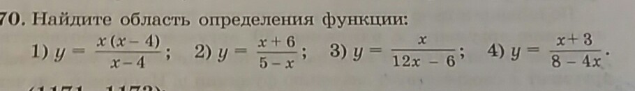 Во всех случаях функция представляет дробь, а значит будет иметь смысл только в случае, когда знаменатель отличен от нуля (на ноль делить нельзя). Поэтому: