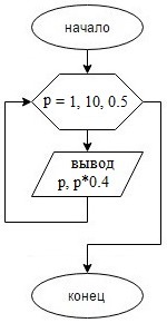 Напечатать таблицу соответствия между весом в фунтах и весом в кг для значений от 1 до 10 фунтов с шагом 0,5 фунта. Формула перевода: 1 фунт = 400 г. Составить программу и блок-схему