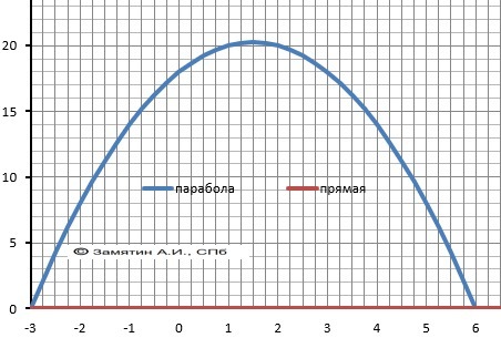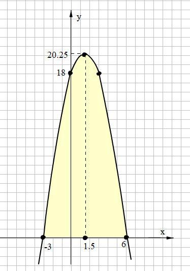 Найдём точки пересечения параболы у = -х² + 3х + 18 с осью. Ох, заданной уравнением у = 0.