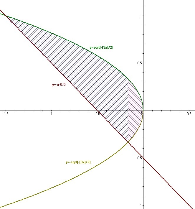 Вычислить площадь плоской фигуры ограниченной заданными кривыми. Сделать чертеж полученной области 2x+3y^2=0, 2x+2y+1=0