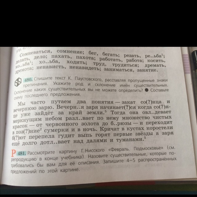 Срочно!!! Спешите текст К. Паустовского, расставляя пропущенные знаки препинания. Укажите род и склонение имён существительных. Склонение каких существительных вы не можете определить? Составьте схему последнего предложения. Номер 480.