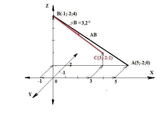 50 Баллов! Даны вершины треугольника A=(5;-2;0), B=(-1;-2;4), C=(3;-2;1). Найти его внутренний угол при вершине B.