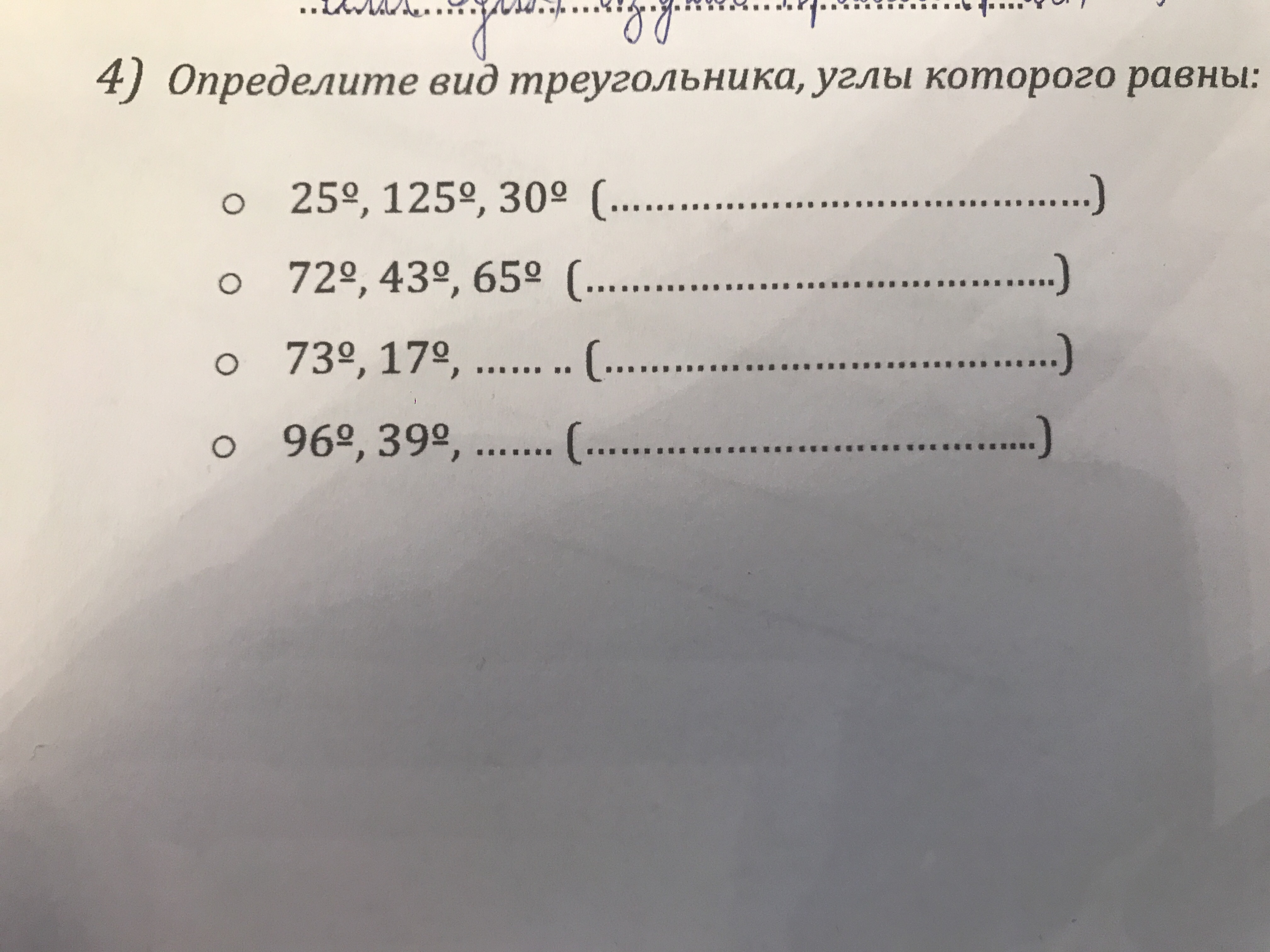 4)1)Так как один из углов треугольника больше 90 градусов (96) то треугольник тупоугольный