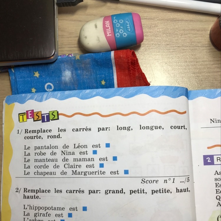 Вставить слова которые в первом упражнении (long,Longue,Court,Courte,Rond ) это французский