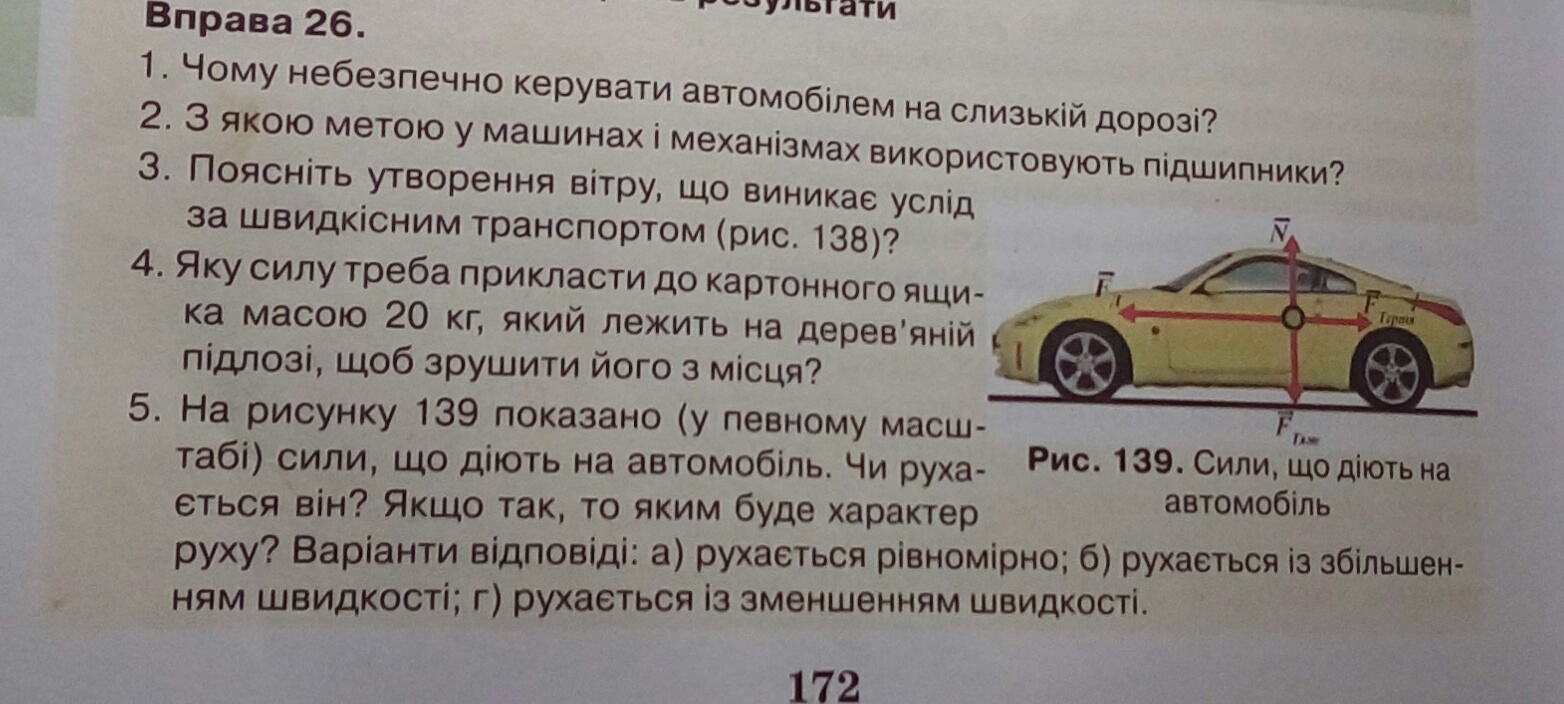 5. Рухаеться уперёд, так как сила F3 ну явно больше силы торможения, ии что там? (плохо видно), и рухаеться с увеличением скорости