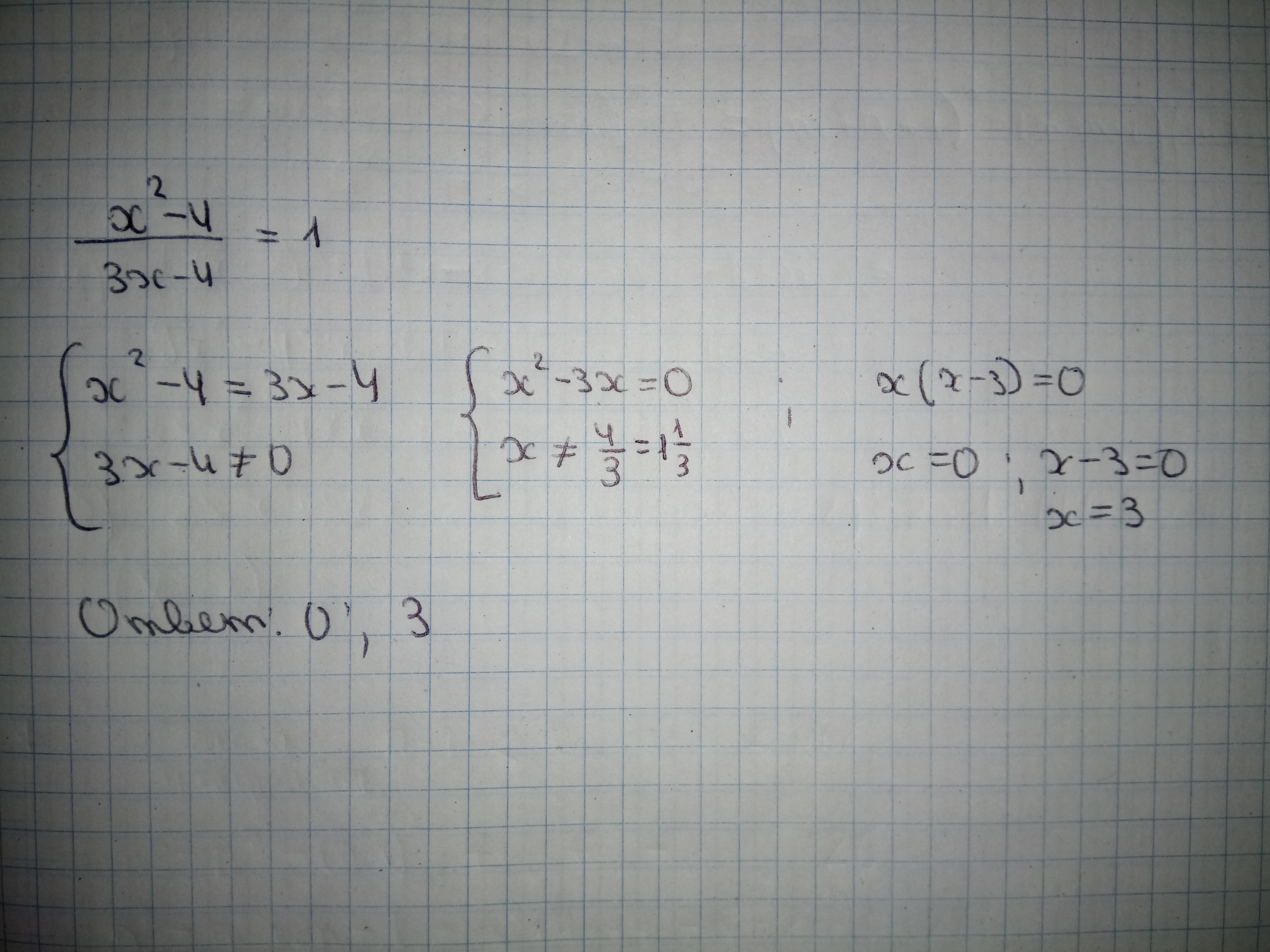 x² - 3x = 0 3x - 4 ≠ 0