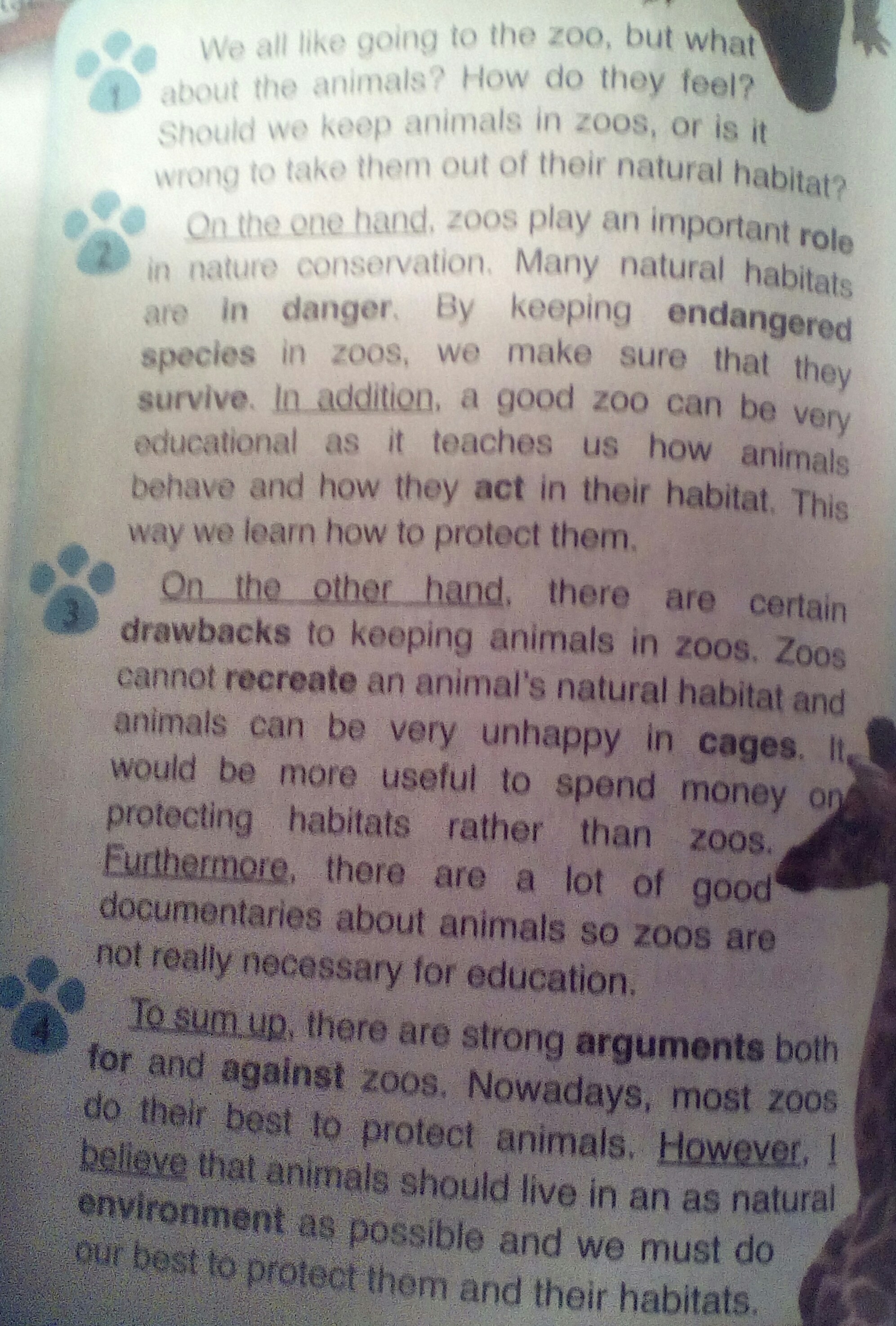 1.Are there certain drawbacks to keeping animals in zoos?
