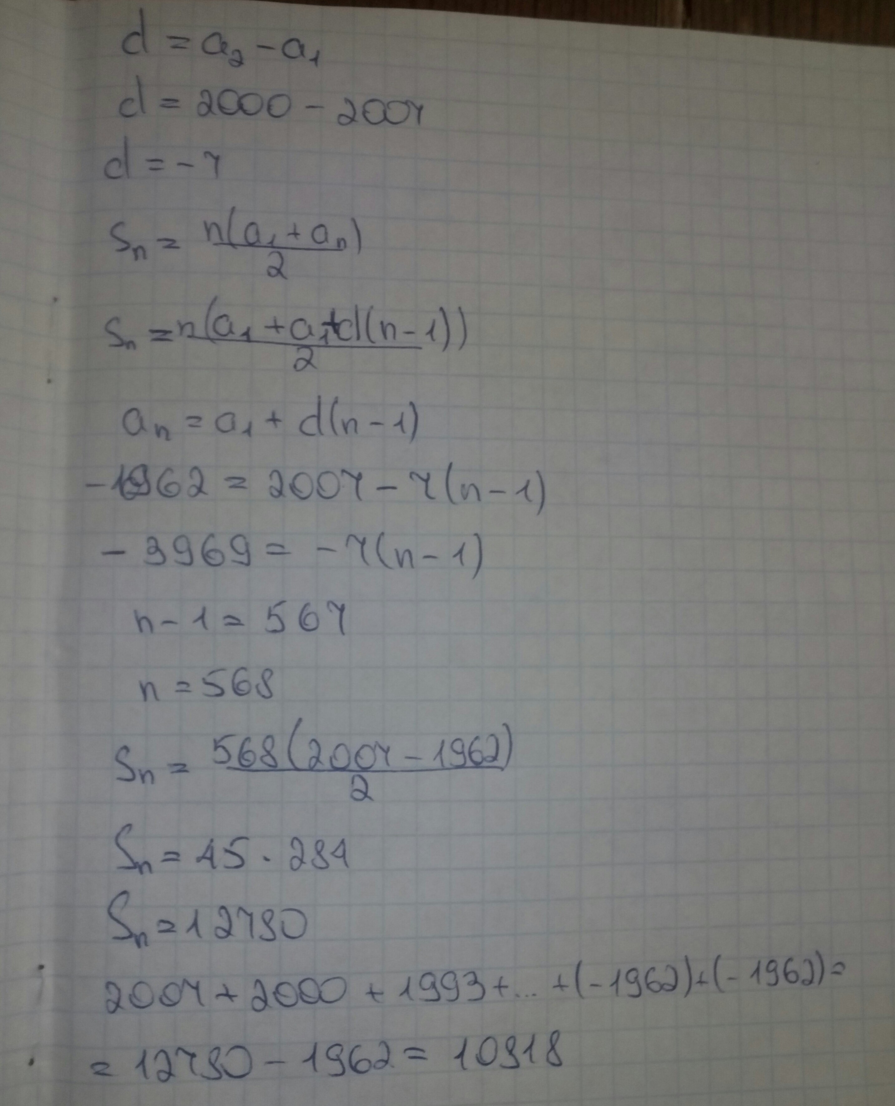 2007+2000+1993+...+(-1962)+(-1962)=
