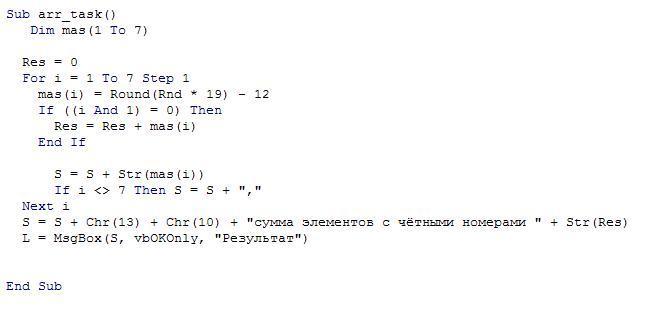 Заполнить массив В(1 То 7) случайными числами из отрезка [-12,7] и определить сумму элементов с четными индексами.