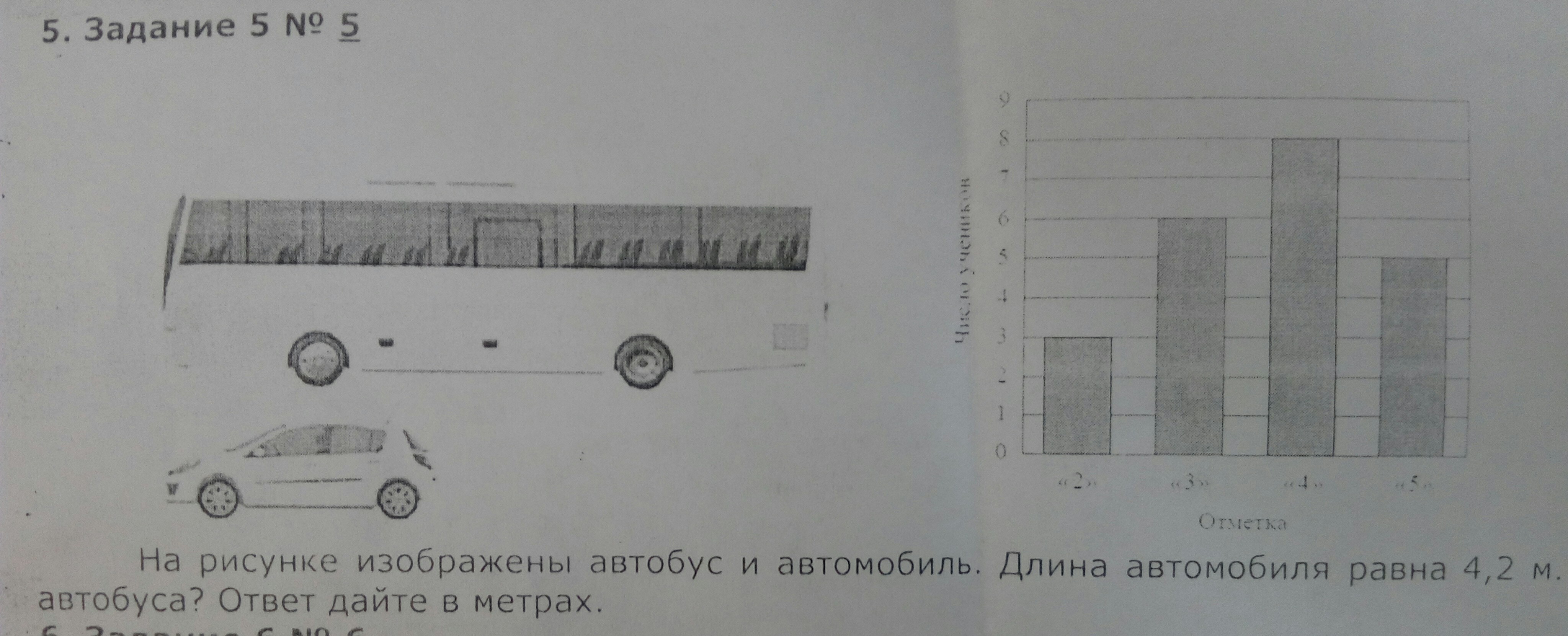 На рисунке изображены автобус и автомобиль длина автомобиля равна 4,2 м Какова примерная длина автобуса Ответ дайте в метрах