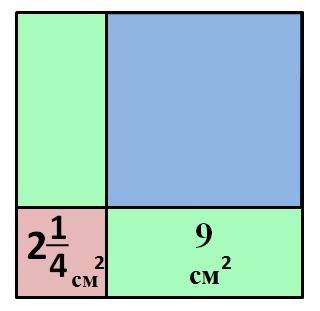 Большой квадрат равен 4 розовым(по замерам) следовательно он равен 9см2