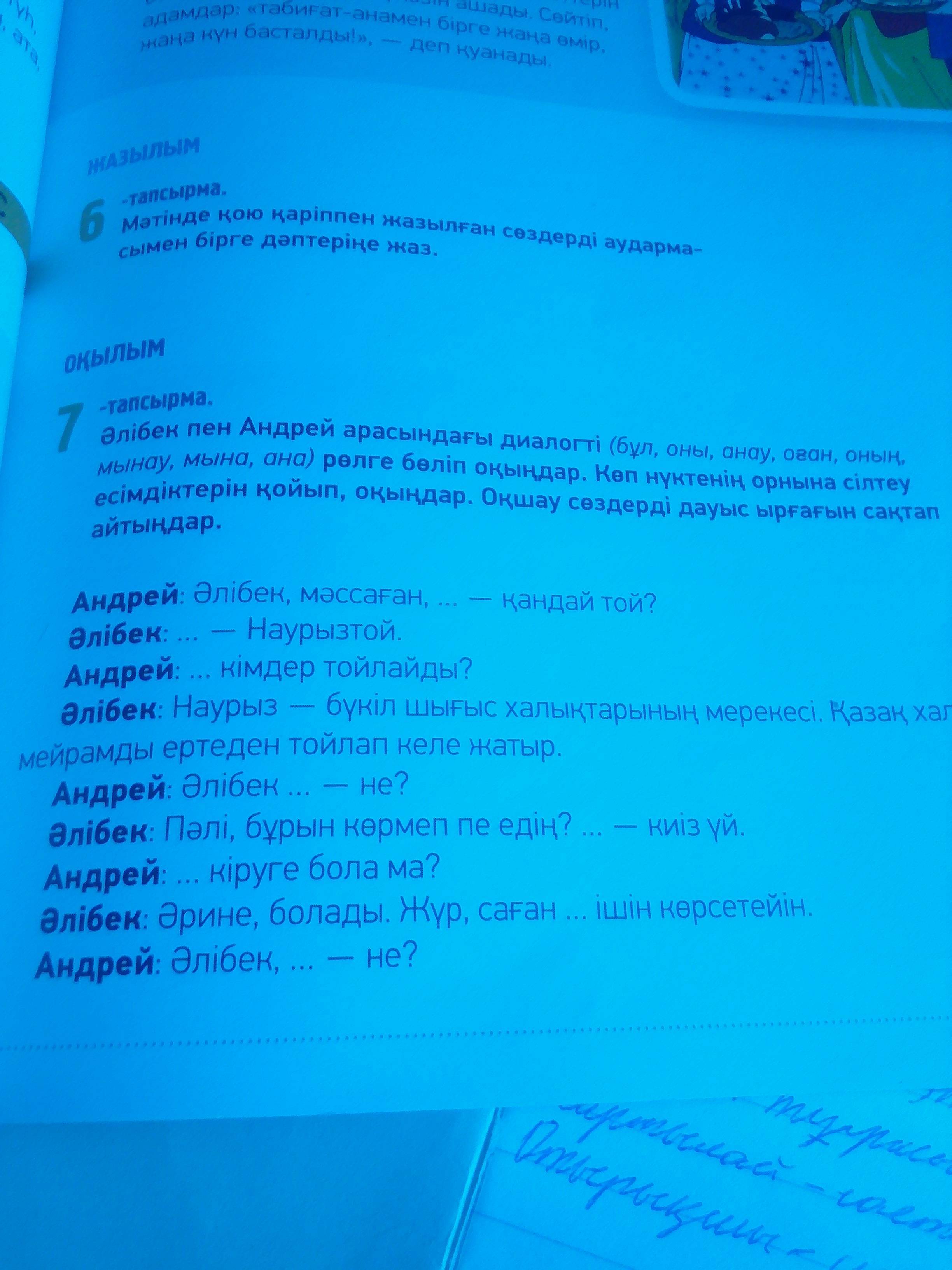 Бұл, Бұл, Оны, анау, Бұл, оған, оның, Мынау. Вместо точек подряд ставить и читать.