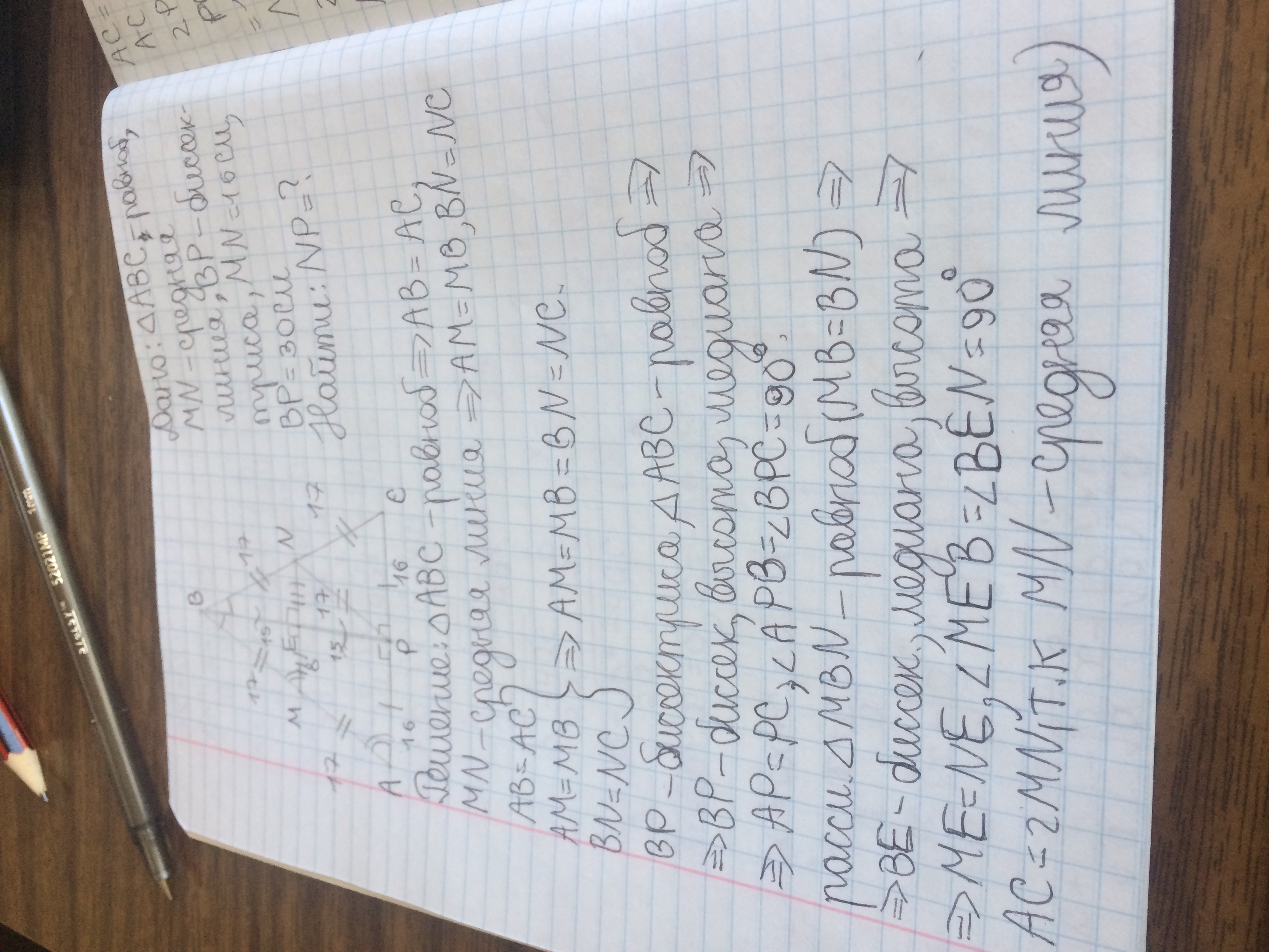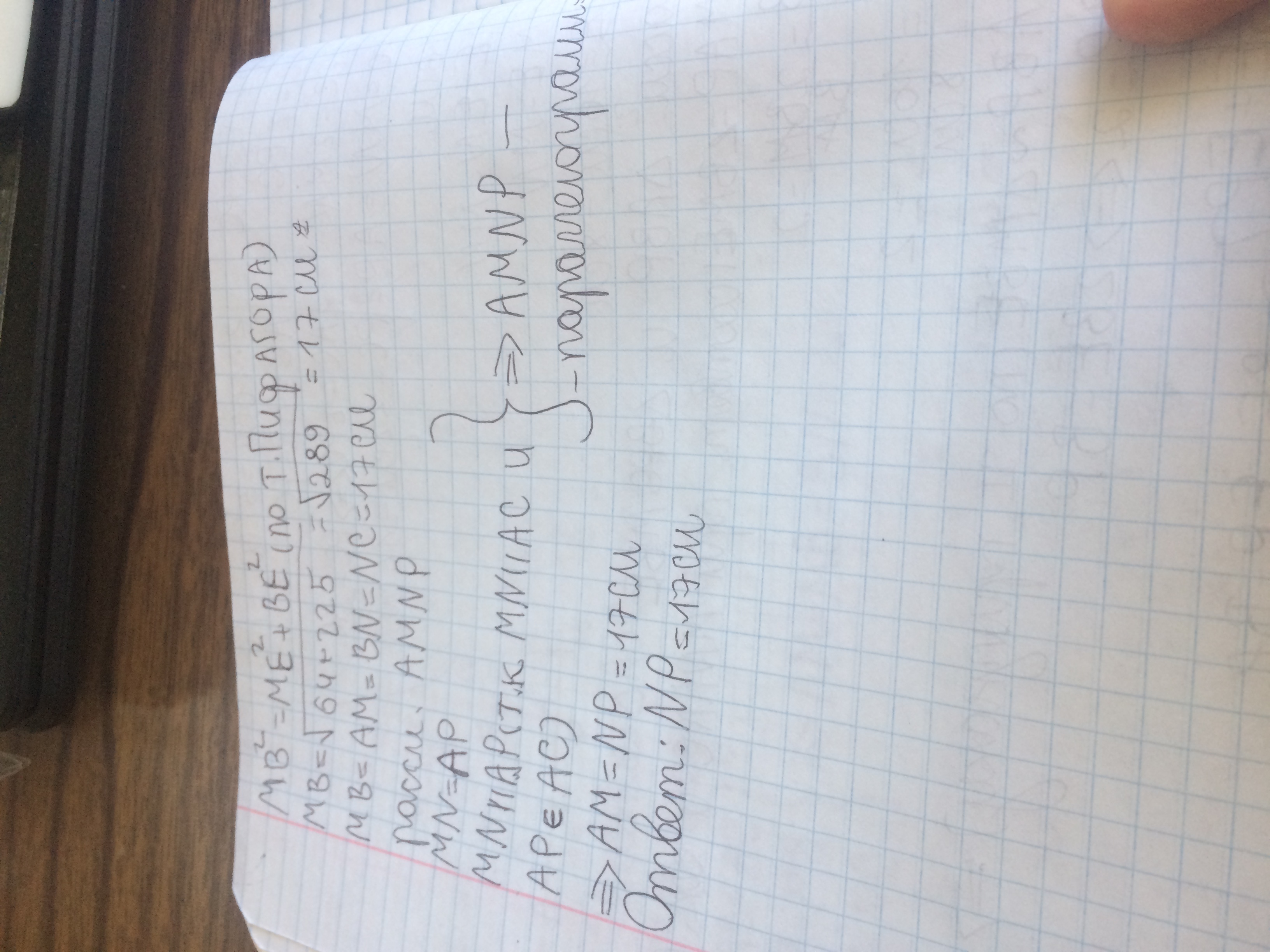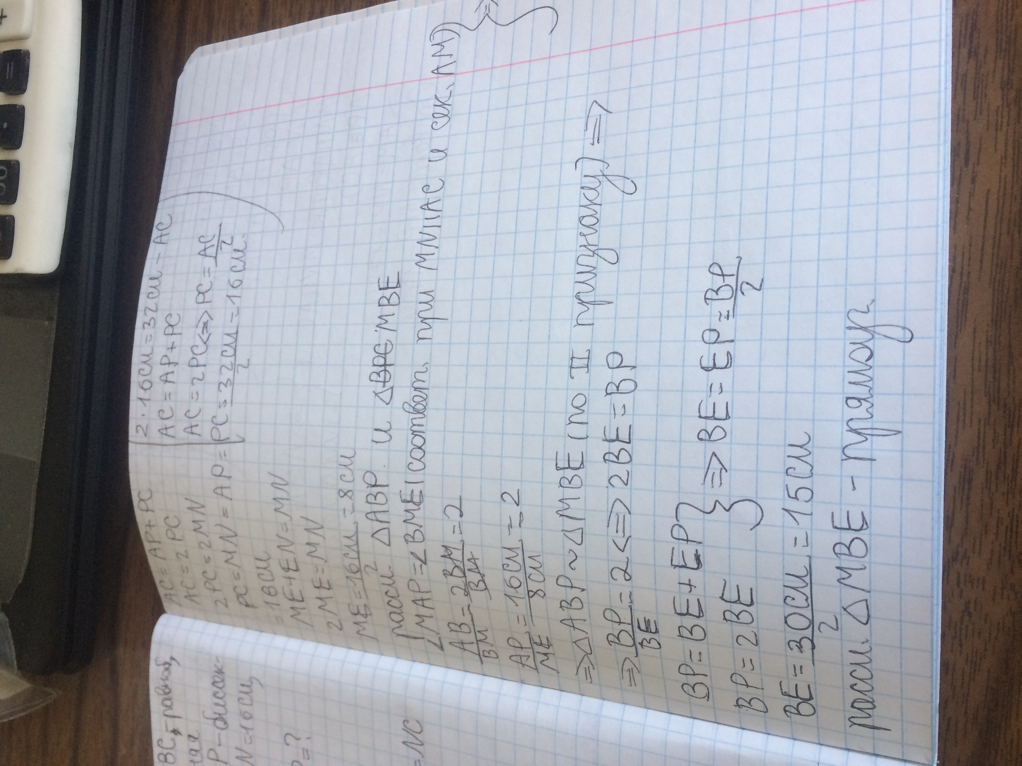 средняя линия равнобедренного треугольника,параллельная основанию, равна 16 см,а биссектриса,проведена к основанию,- 30 см.Найдите среднюю линию,параллельную боковой стороне треугольника.