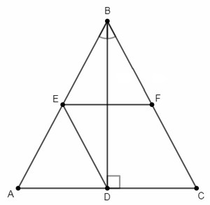Биссектриса к основанию равнобедренного треугольника является также высотой и медианой. BD - биссектриса, следовательно и медиана, а D - середина AC. Отрезок ED соединяет середины сторон AB и AC, является искомой средней линией, параллелен боковой стороне BC и равен ее половине.