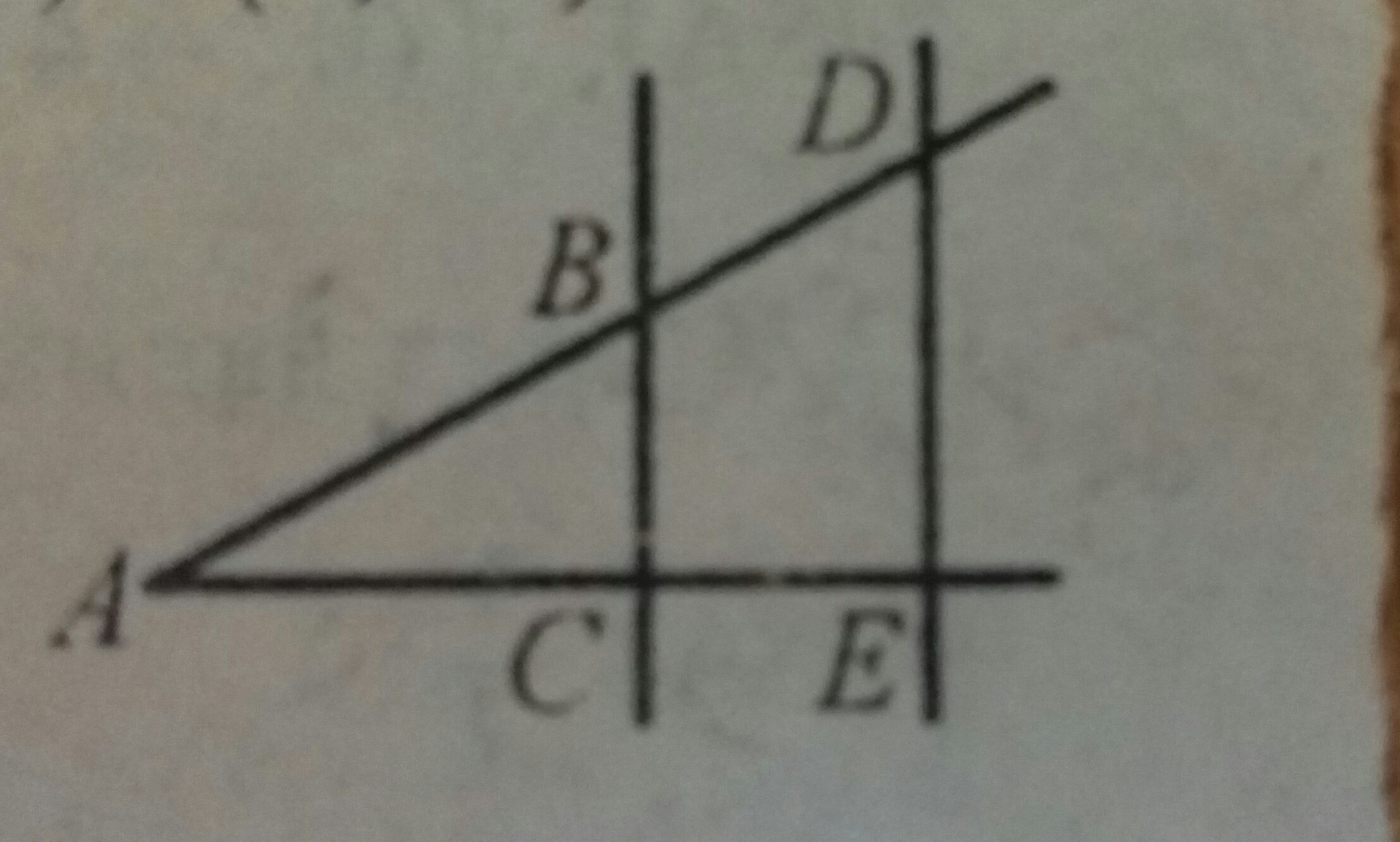 Паралельni прямі BC і DE перетинають сторони кута А, зображеного на рисунку, АВ=6 см. АС=4 см. СЕ 2 см. Знайдіть довжину відрізка BD.
