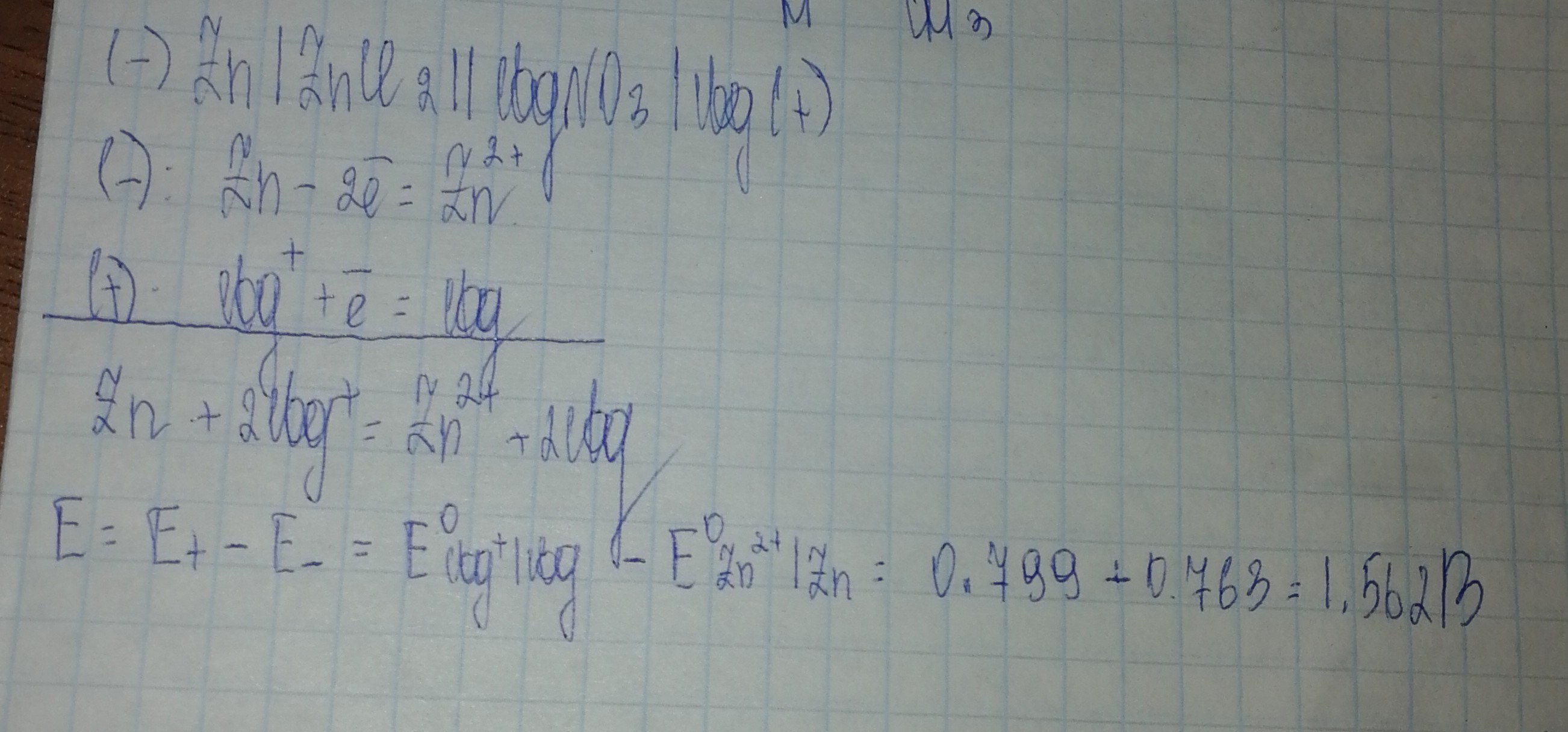 Рассчитайте ЭДС следующего гальванического элемента (условия стандартные): Zn/ZnCI2 // AgNО3/Ag.