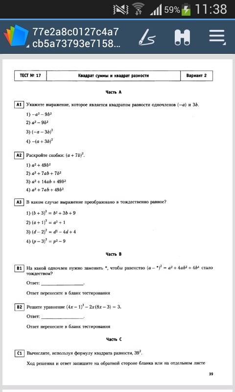 C1 39² = (40 -1)² = 1600 - 80 +1 = 1521