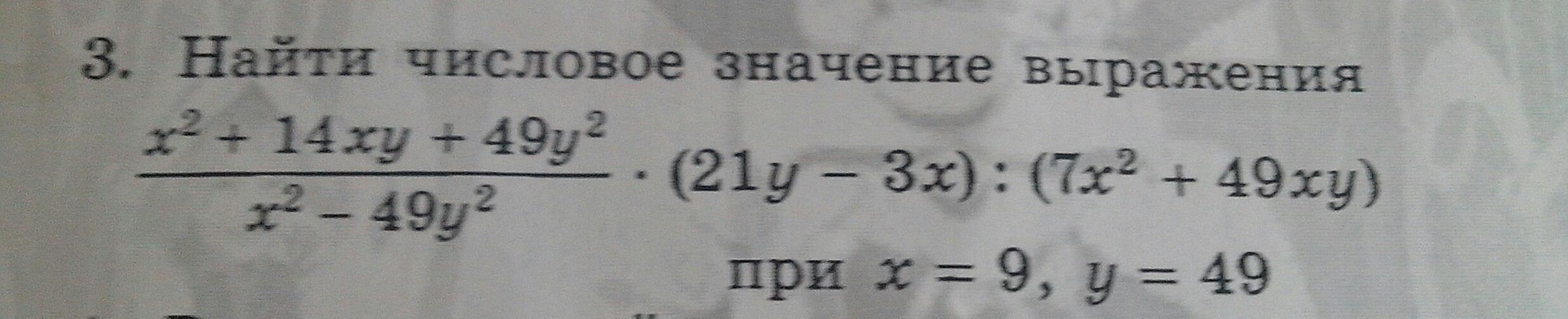 ((x+7y)(21y-3x))/((x-7y)7x(x+7y)) ; (x+7y) сокращаются в числителе и знаменателе, остается: