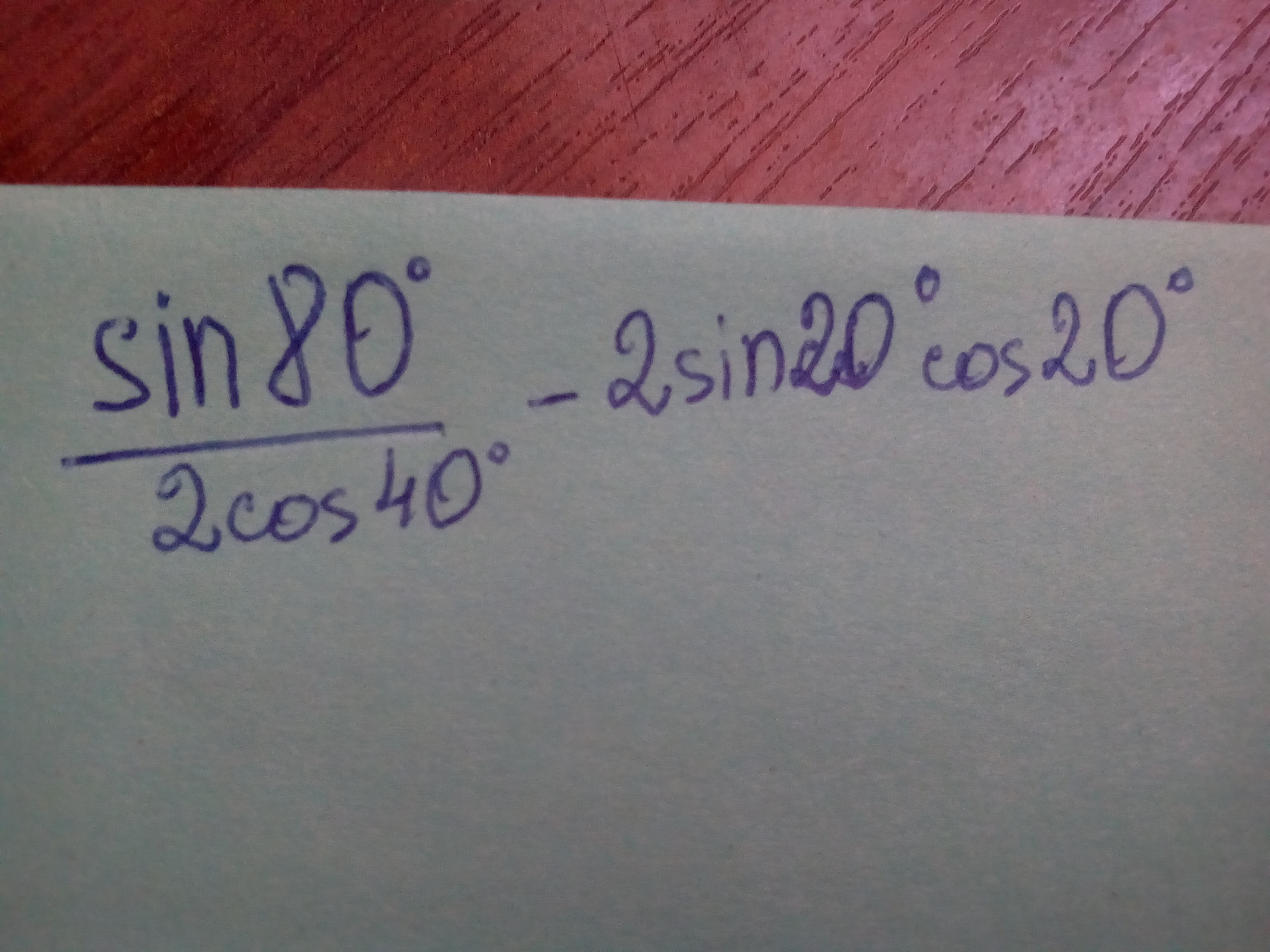 sin80°/(2cos40°) - 2sin20°cos20°= заменим синус восьмидесяти
