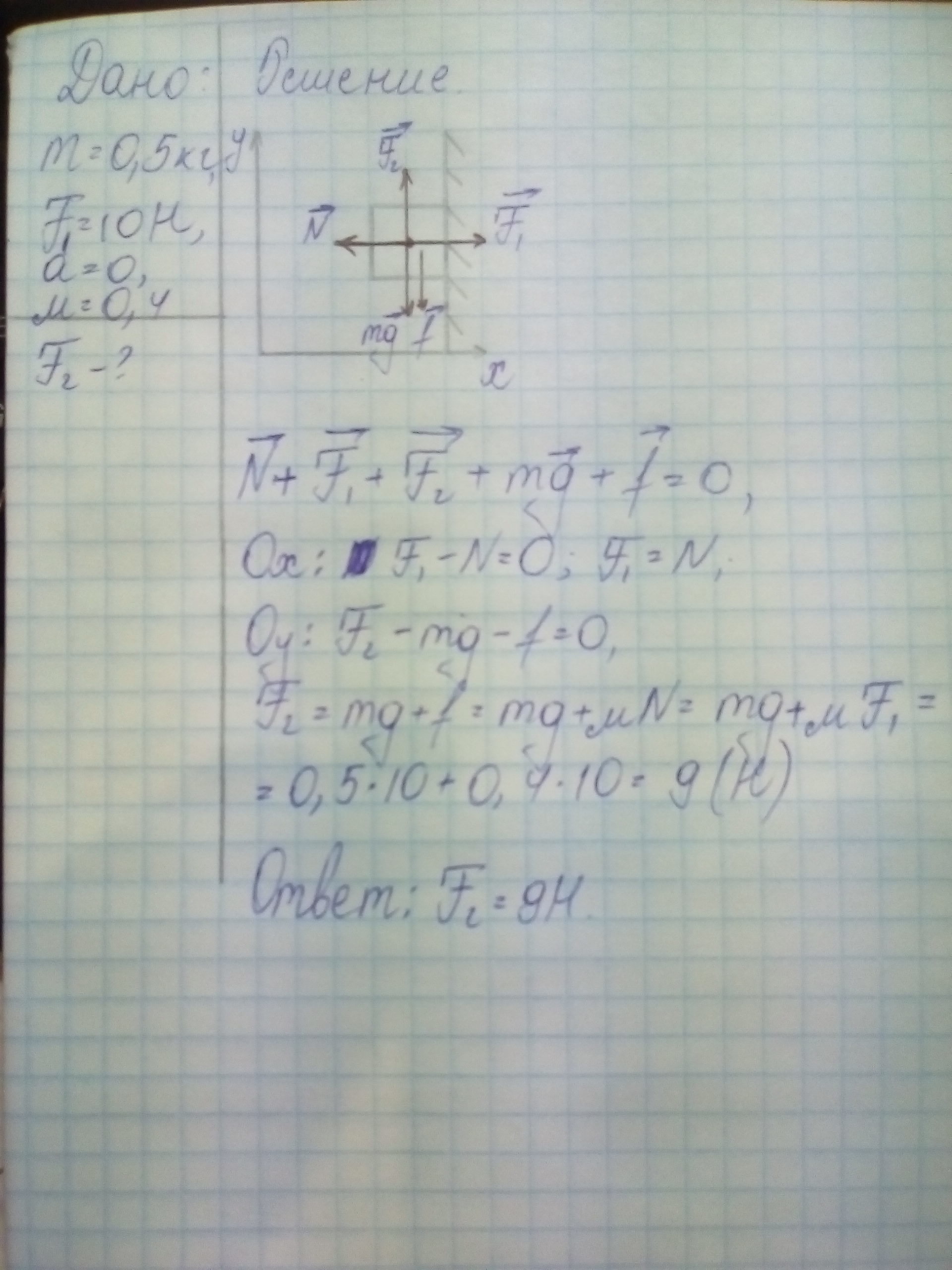 Ответ: F = 4,9 + 4 = 8,9 Н.