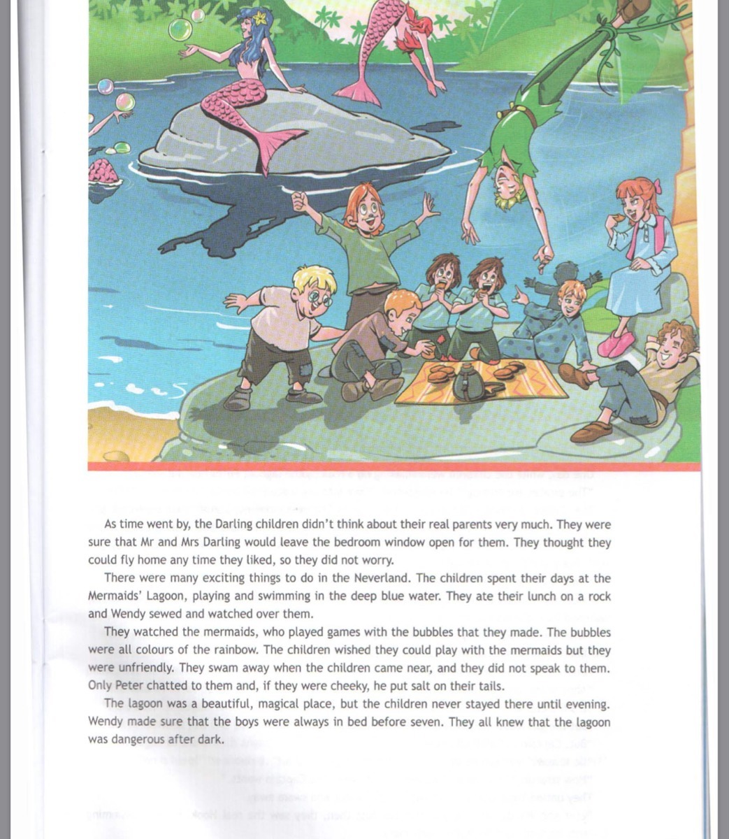 Потерянные мальчики услышали счастливый крик, и они побежали из подземного дома. «Это Питер!» они плакали. «Питер дома!» Питер приземлился перед мальчиками, а дети-милые приземлились за ним. "Привет ребята!" - сказал Питер. «Я вернулся, и у меня есть мать для всех вас! Ее мисс« Потерянные мальчики »упали на колени перед Венди:« О, Венди, пожалуйста, будь нашей матерью! »- воскликнули они. Венди была очень довольна.« Но я «Только маленькая девочка, - сказала она, - я не знаю, как быть матерью» «Это не имеет значения, - сказал Питер, - вы добры и нежны, и вы будете любить нас. «Очень хорошо», сказала Венди. "Я сделаю все возможное." Итак, Венди присматривала за Питером, Джоном, Майклом и Потерянными Мальчиками. Питер сделал подземный дом для каждого из трех милых детей, и все они жили Венди, готовили еду и держали дом в чистоте. Она поправила свою старую одежду новыми. Она заставляла мальчиков спать по ночам и делала все, что ей нравилось. Она наслаждалась этим, и даже когда она кричала на мальчиков и делала медицину, у нее была большая улыбка на ее лице.