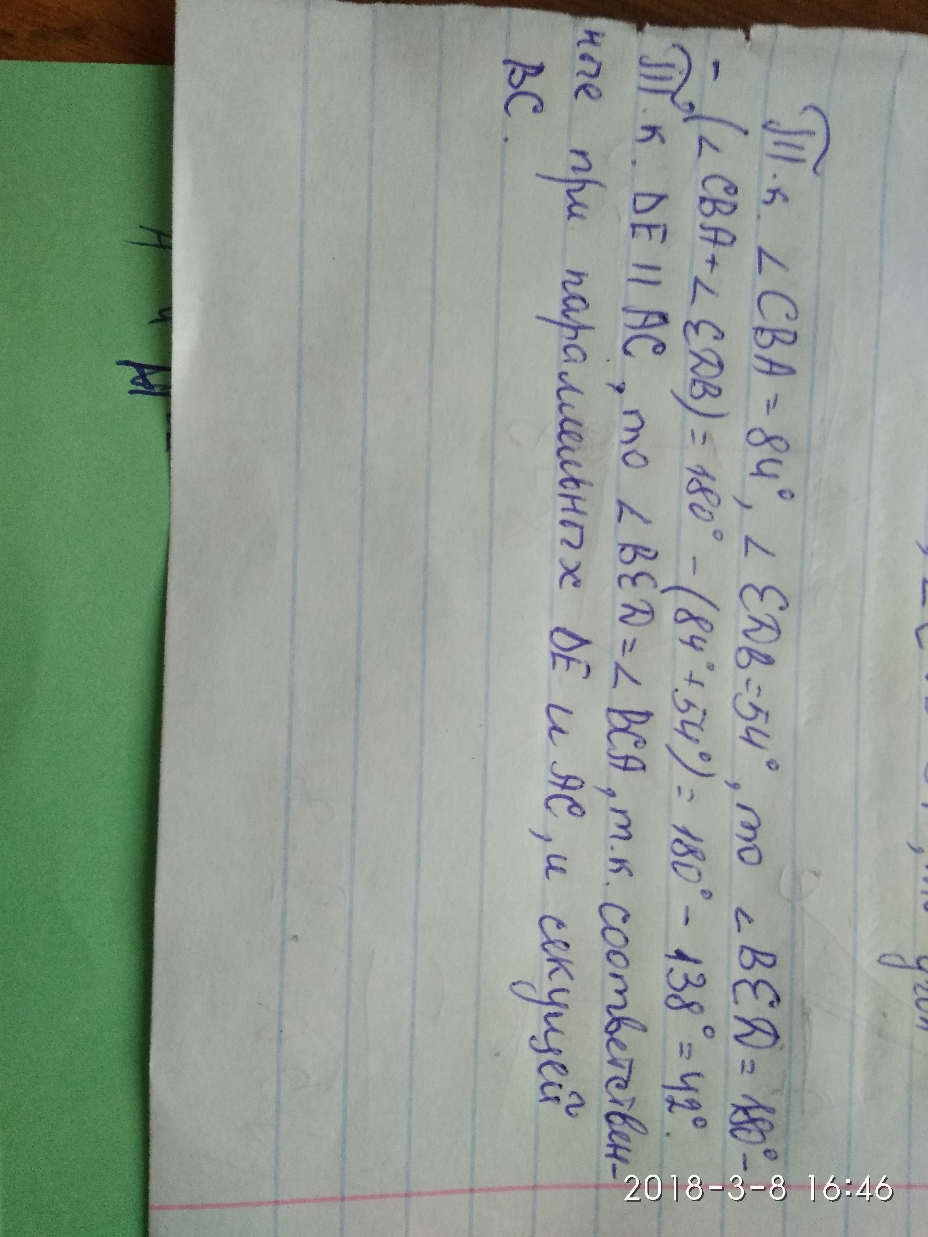 D∈AB,E∈BC, ∢CBA=84°, ∢EDB=54°
